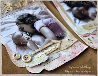 но не будем о грустном, будем о моих страданиях по акварели.... после первого разворота у меня было желание махнуть рукой и убрать краски в самый дальний ящик... ну не мое это. Тем более, что посмотрев на работы других участниц, я почувствовала себя ну полным неудачником((( никак не связываются у меня воедино пристаренные фотографии, нежнятинский стиль и акварельные фоны... но потом взяла себя в свои же руки и "да гори оно конем..." - буду делать так, как получается, даже если и не получается...